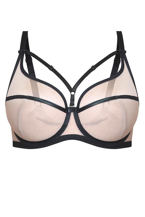 Biustonosz Mediolano Disco Plunge 19154 to połączenie nowoczesnego designu i elegancji. Konstrukcja COSMO z miseczkami wykonanymi z dwóch warstw transparentnego tiulu zapewnia lekkość i stabilność. Czarne przeszycia na miseczkach dodają bieliźnie zmysłowego charakteru, a ozdobne paseczki na dekolcie podkreślają biust. Złote haftki i regulatory nadają całości luksusowego wyglądu. Dzięki przemyślanej konstrukcji biustonosz doskonale sprawdza się na niemal każdym biuście, zapewniając wygodę i perfekcyjne dopasowanie.
